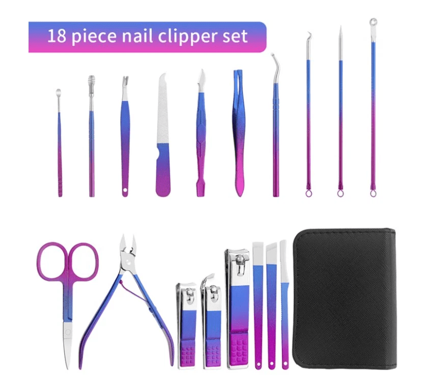 9/18 pcs Gradient Color Nail Clippers Manicure and Pedicure Tool Set